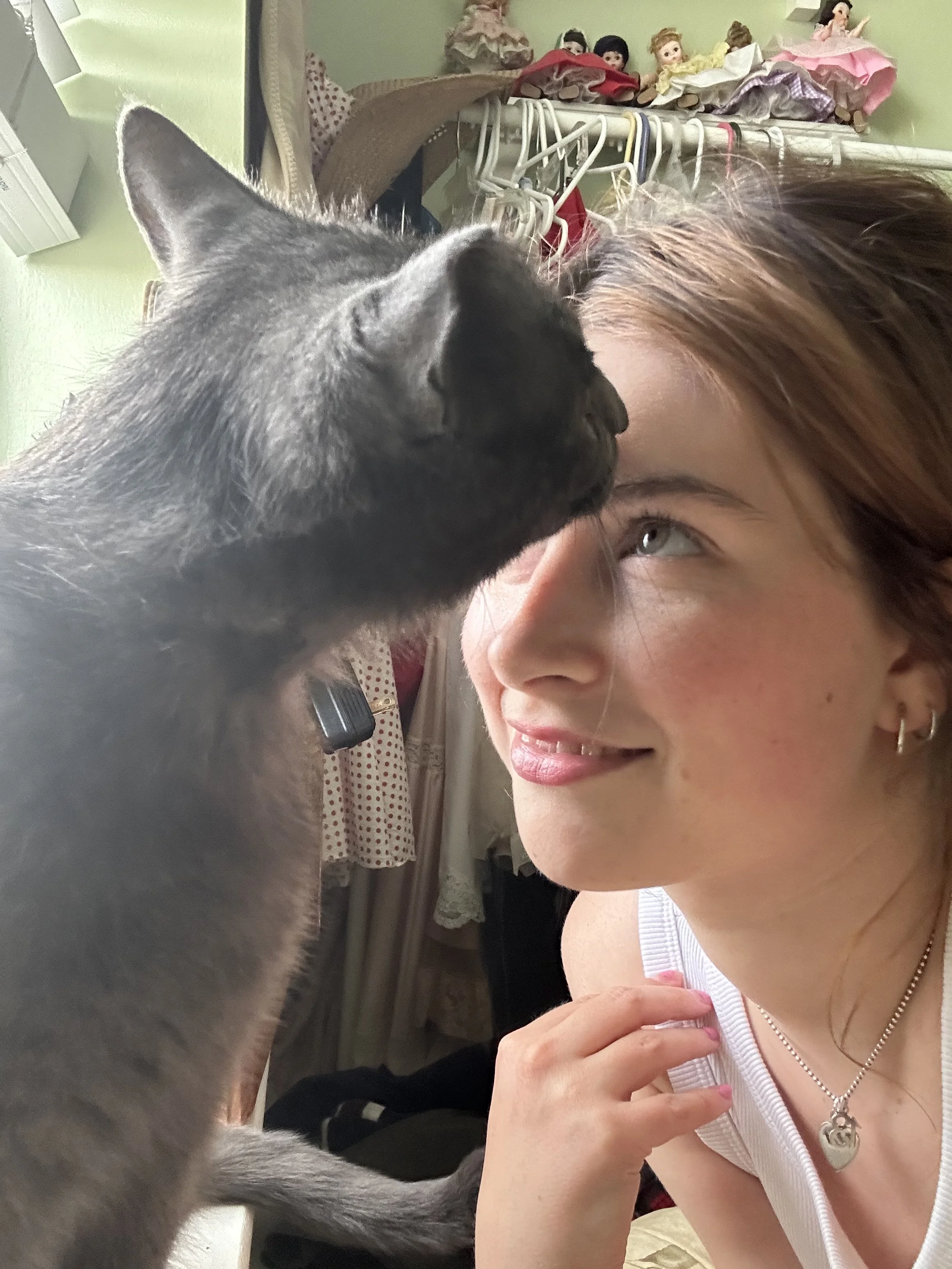 Here is me looking lovingly at Grischa while he sniffs my face.